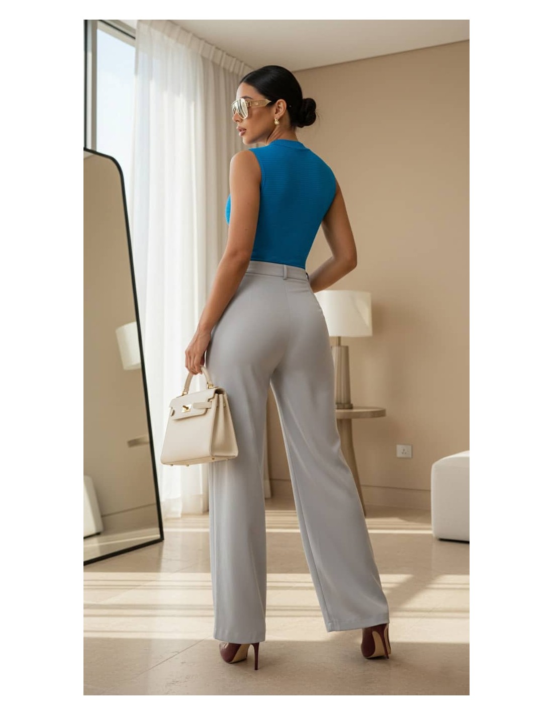 Su diseño moderno destaca por la cremallera frontal, que permite mayor practicidad al vestir y un estilo sofisticado que lo convierte en una pieza ideal para cualquier ocasión.