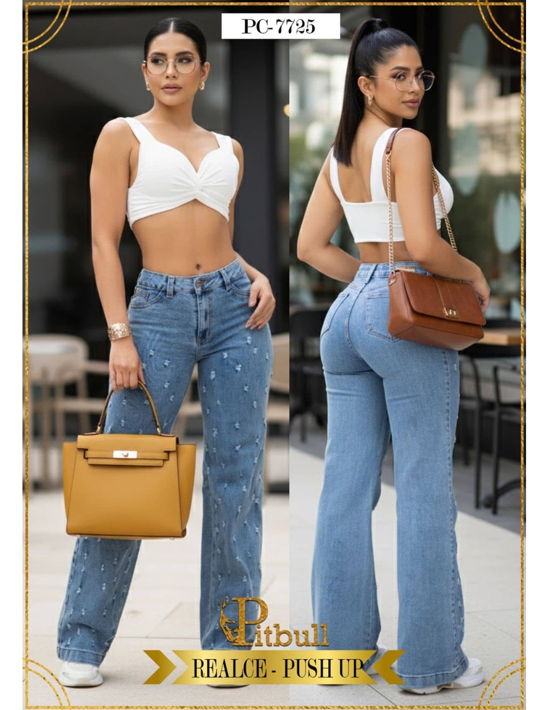 El pantalón Pitbull PC7725 combina el estilo clásico de la bota campana con el efecto realce push up que caracteriza a la marca. Diseñado para mujeres que buscan destacar su figura con un toque moderno y favorecedor, este pantalón se adapta con suavidad a tus curvas, estilizando piernas y glúteos.