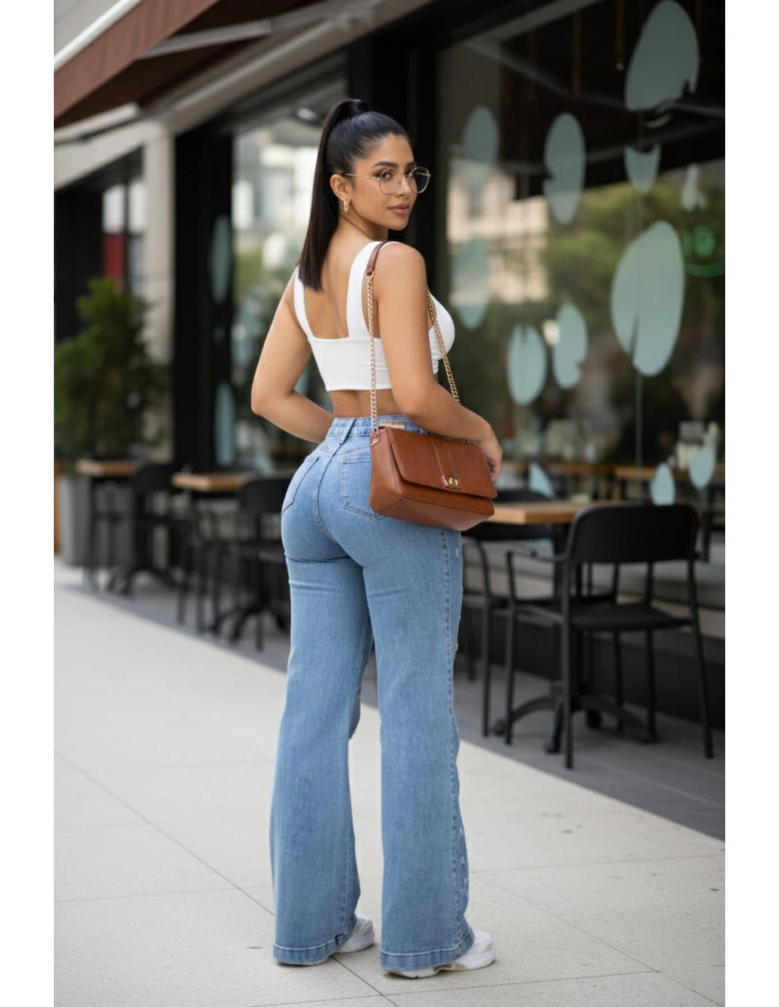 Pantalón bota campana estilo colombiano con realce tipo push up. Ideal para destacar tu figura con un look moderno, femenino y cómodo.